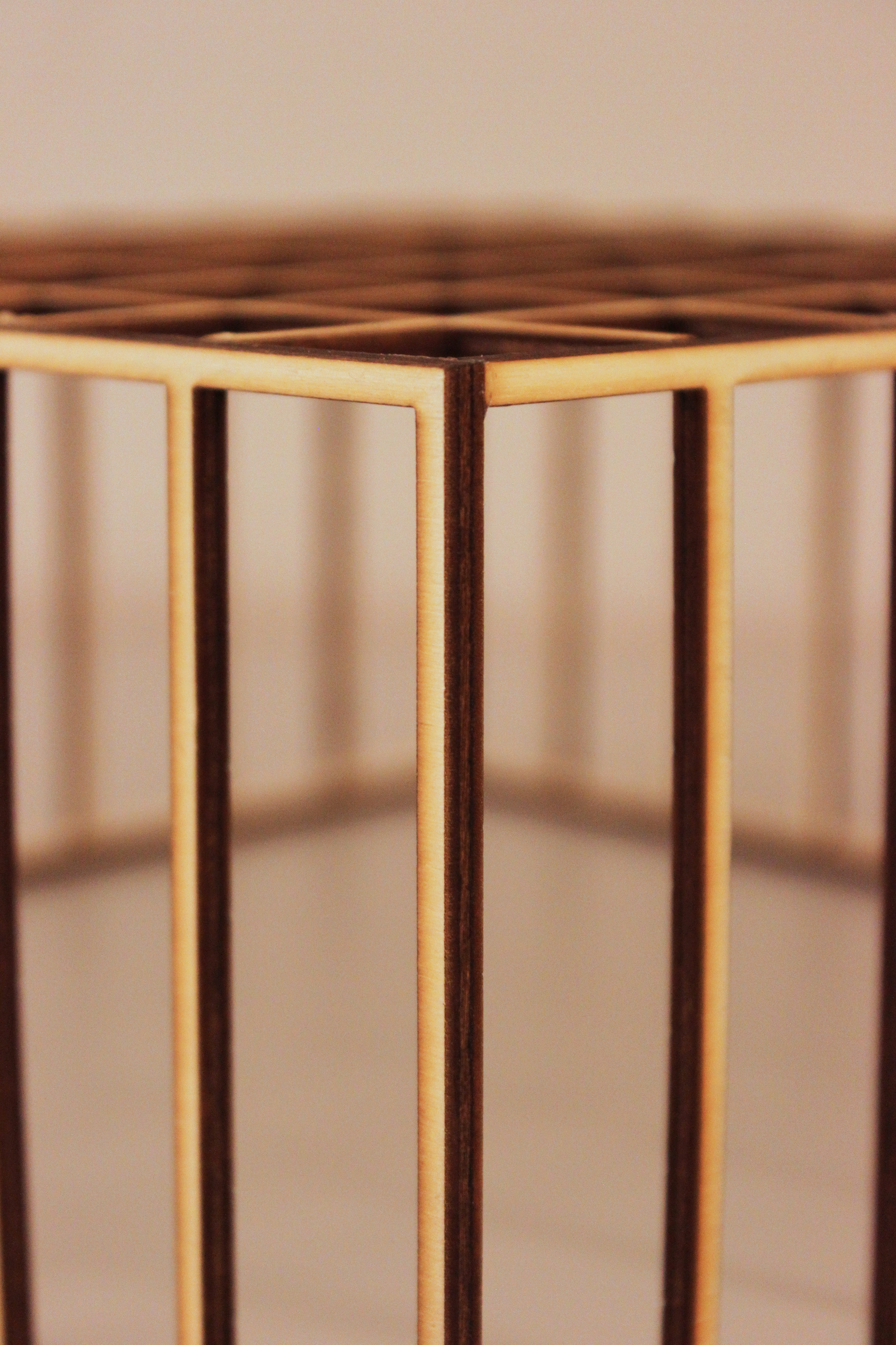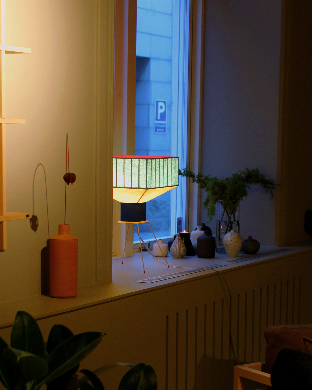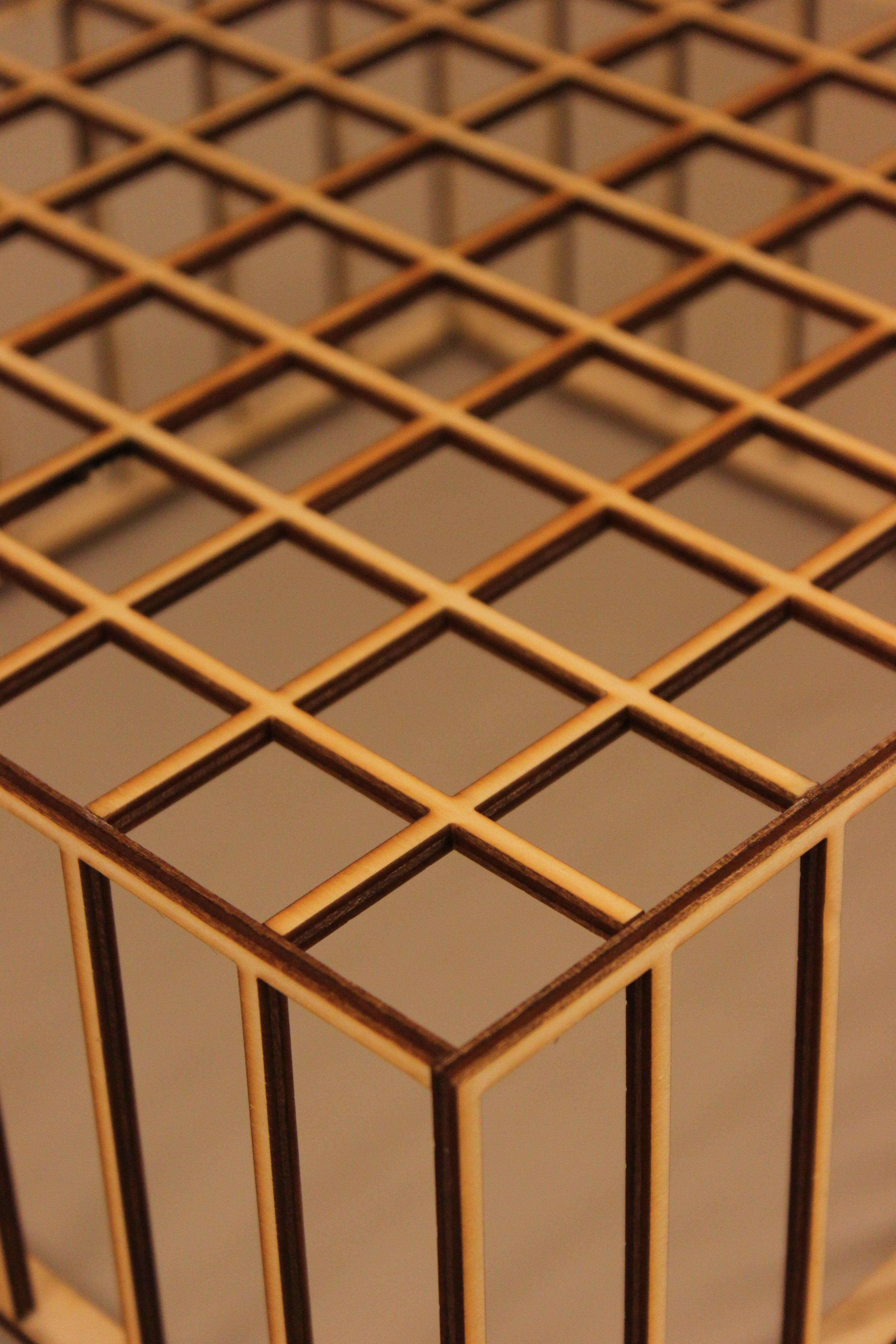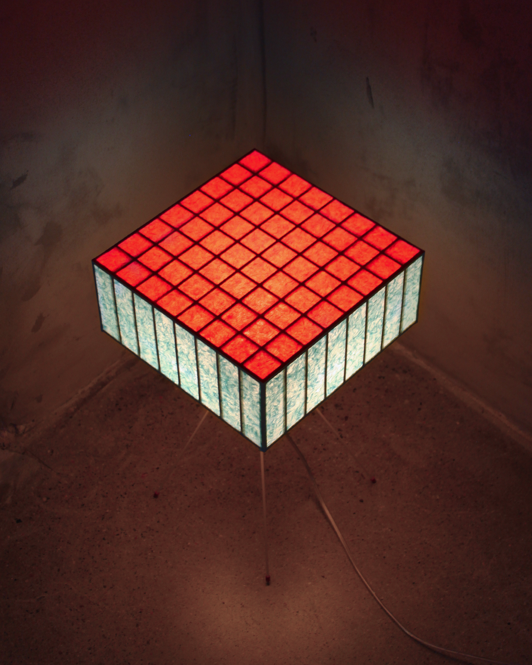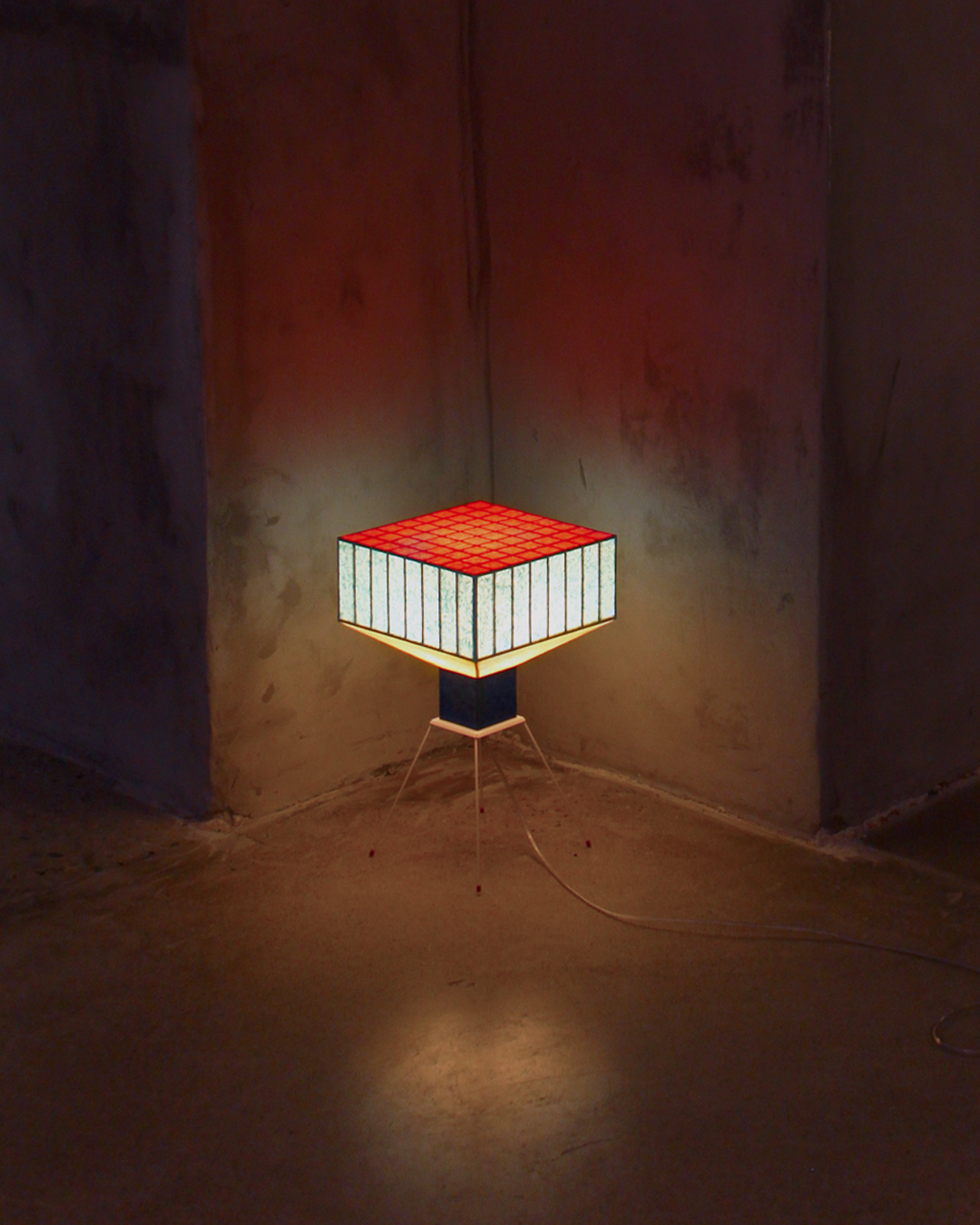 This lamp pushes the boundaries between futuristic empire and the modernist/cubist aesthetic appearance which we definite with straight lines and geometric shapes. The four corners is repeating and is tangible in all levels.